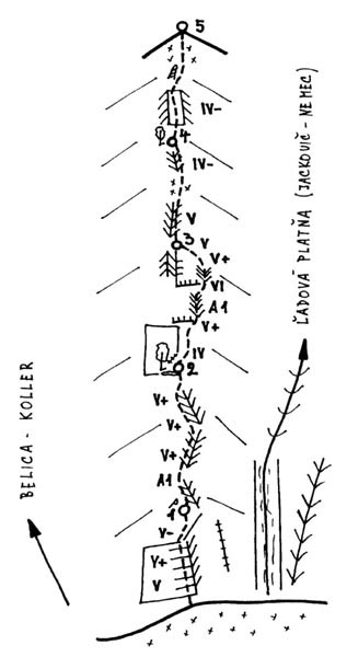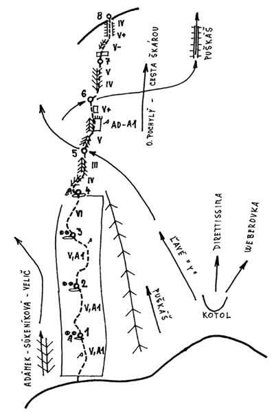 jasne vážnejšiou cestou bol kúsok vpravo Jackovičov "Vodný žľab", 5+ A0, kde,
