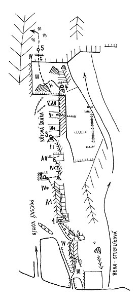 ![]() Malý Ošarpanec, Z stena, cesta „Tatarka – Jurečka", 80. roky, 1. RP: Igor Pap, 14. 10. 1988 |