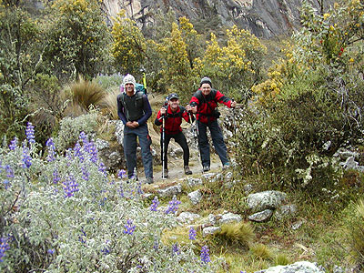 Plánujeme prespať v „Hostal Gledel“. Mali sme naň referencie zo Slovenska a boli naozaj dobré. Všetko sa potvrdilo, domáca pani Rusula vám naozaj pripraví domovskú atmosféru. Ráno odchádzame collectivom (skupinová preprava osôb) do horskej dedinky Cashapampa a ďalej už iba po svojich. Prenajímame si somáre. Jeden stojí 5 dolárov na deň a k tomu pohoniča, 10 dolárov na deň. Zvykom je dať mu najesť aspoň raz denne a nechať ho prespať vo vašom stane. Máme štyri somáre a šliapeme hore krásnym kaňonom do prvého kempu vo výške 3750 m. Okolo tábora sa voľne pasú kone, somáre a hovädzí dobytok. Samá romantika. Na druhý deň pokračujeme ďalej dolinou St. Cruz. Vidíme primitívny spôsob života, kde chatrče postavené len z kameňa na kameni slúžia ako príbytok. Ľudia žijú vo veľkej chudobe, no v peknej harmónii s prírodou.