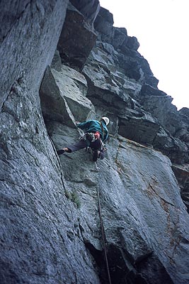 - Prostredná Slavkovská bašta, SV stena, Utópia, 7, prvovýstup, 27. 9. 2003,